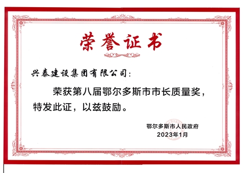 第八屆鄂爾多斯市市長質(zhì)量獎