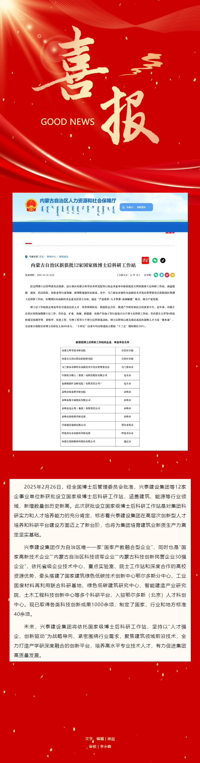 喜報(bào) | 興泰建設(shè)集團(tuán)獲批設(shè)立國(guó)家級(jí)博士后科研工作站