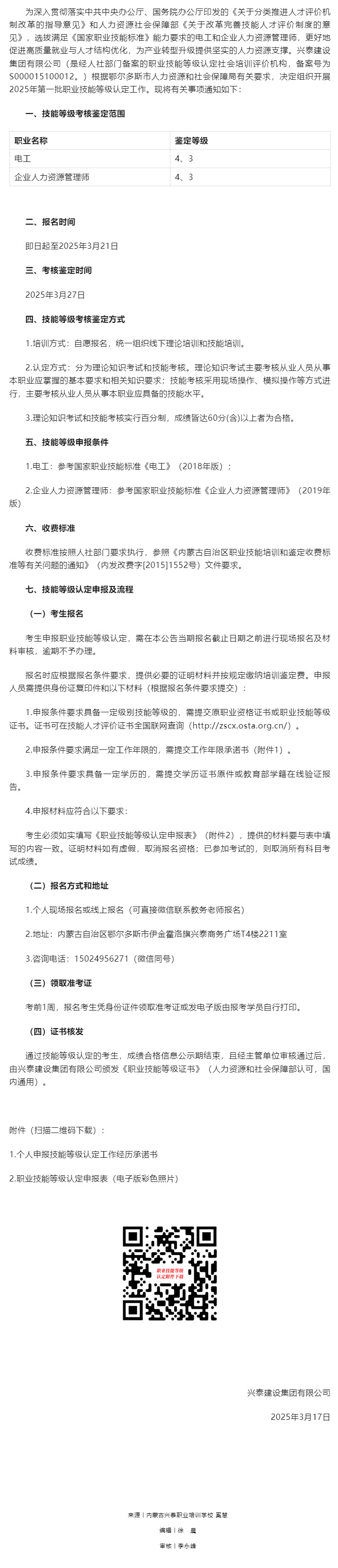 興泰建設(shè)集團(tuán)有限公司2025年第一批職業(yè)技能等級認(rèn)定公告